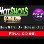 Keep the bullseye by the edge of the rough where rough just meets the sand. Adjust max+10% P5 and push to max. Check wind strength and apply spins as below: